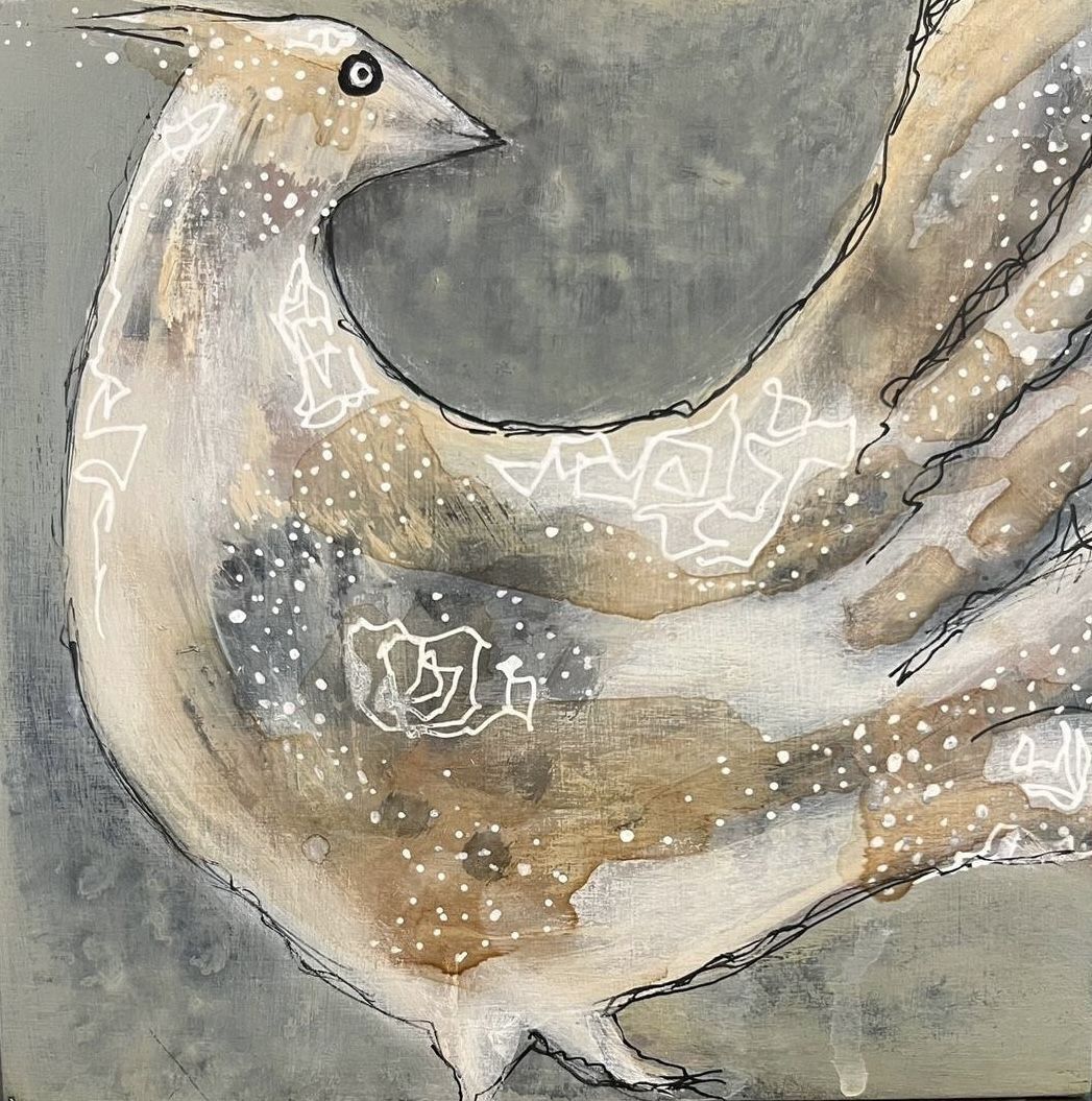 Winter hen 6x6”on wood panel - 100.00