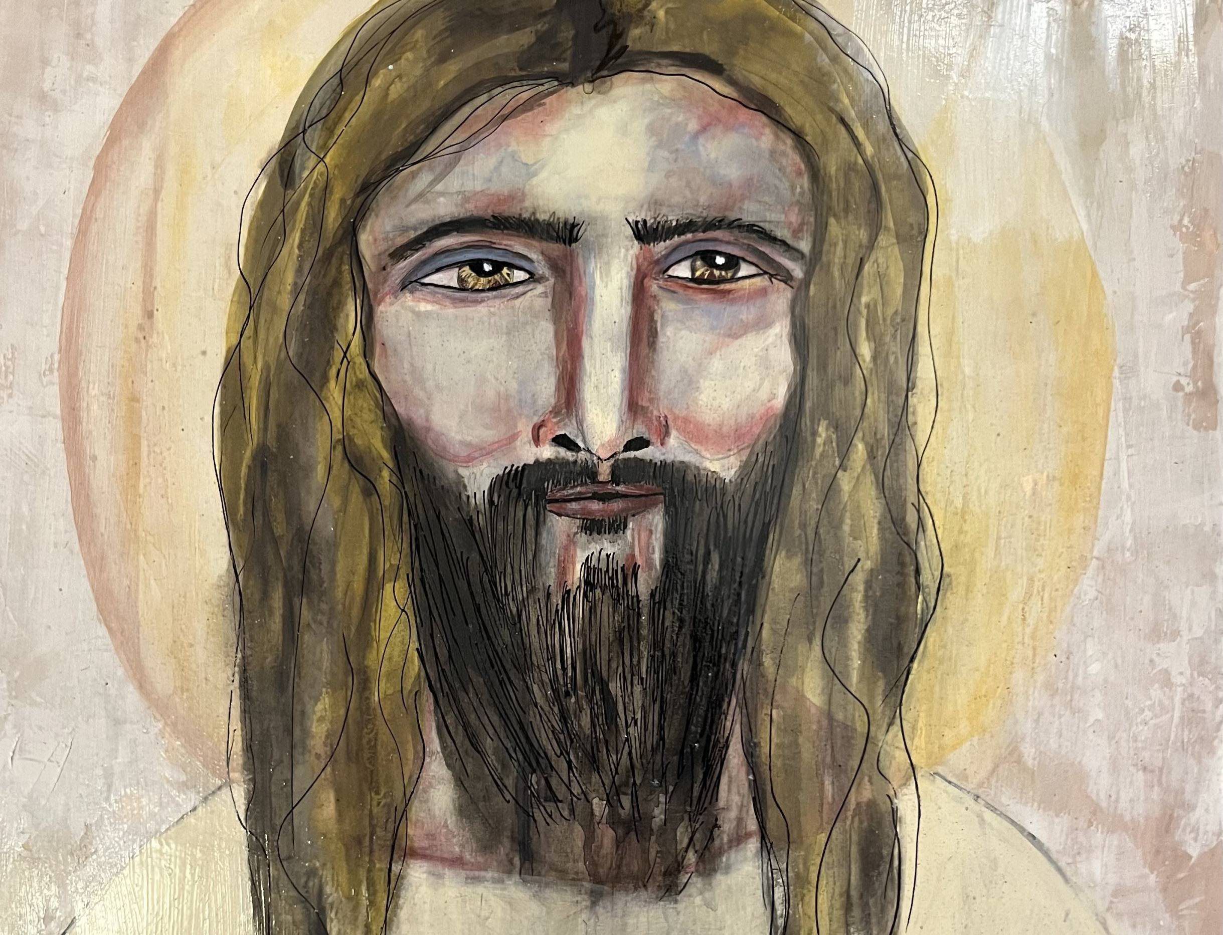 Golden Yeshua 16x16" on framed wood panel - 350.00